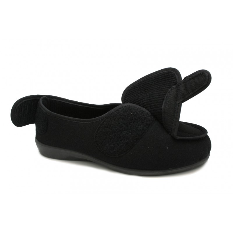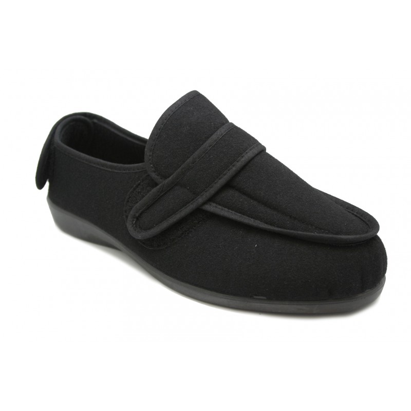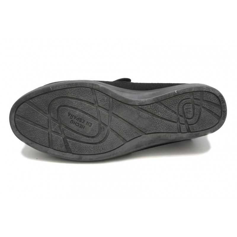 Zapato especialmente diseñado, para grandes problemas de pies( post-operatorio, rehabilitación, elefantiasis, talones y empeines hinchados). Fabricado todo en suapel negro. Velcros ajustables