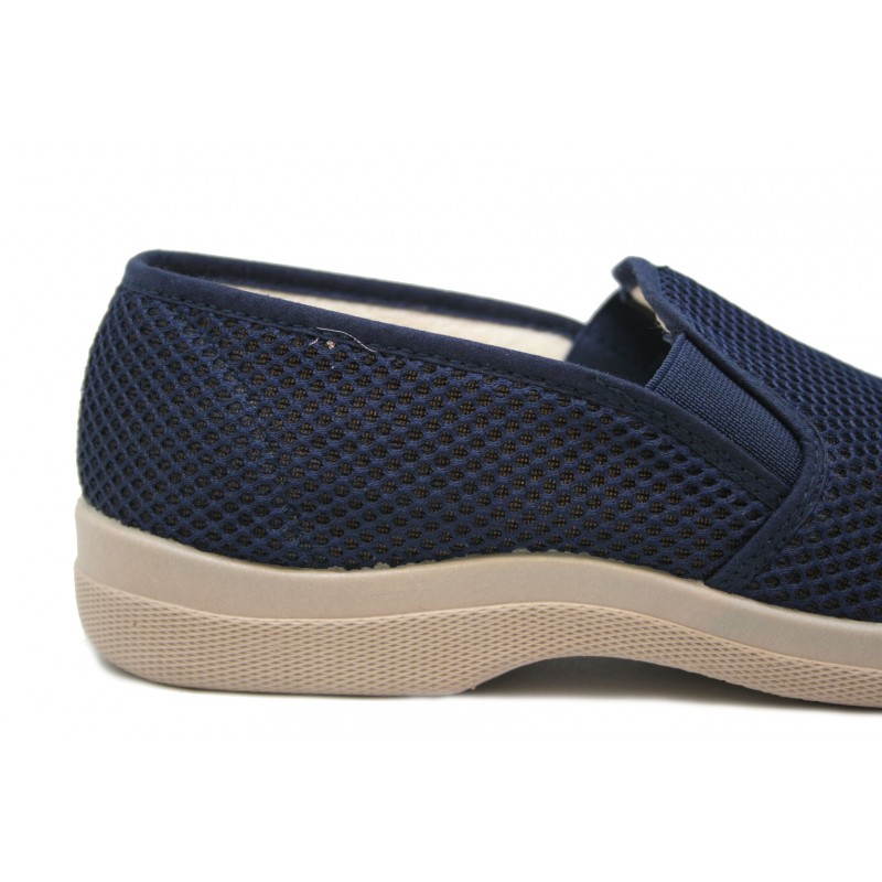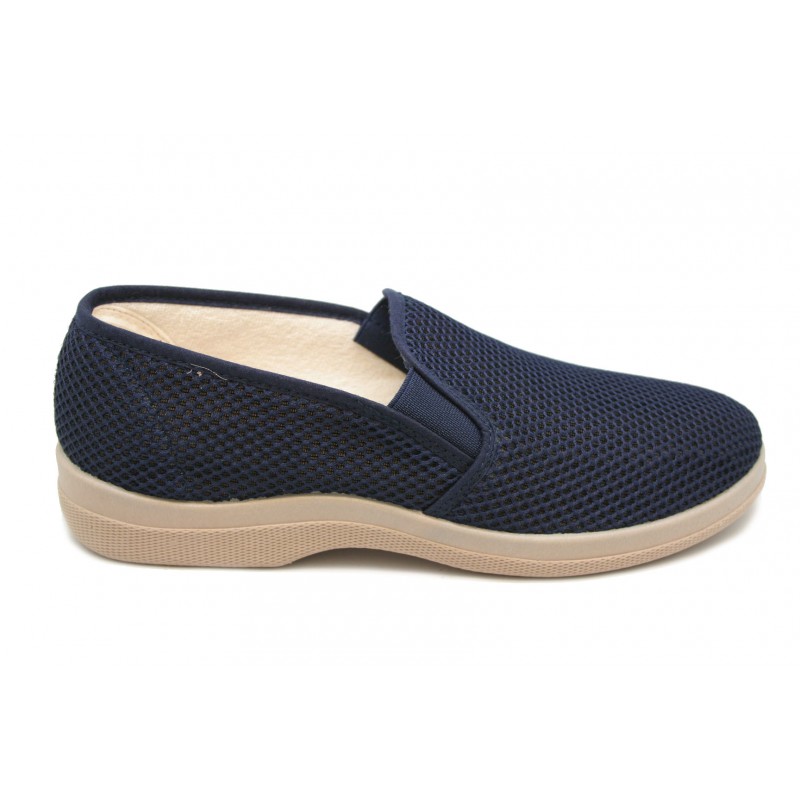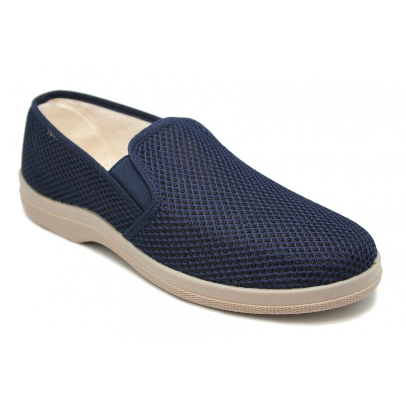 Mocasín para caballero con dos elásticos en el empeine, con la pala lisa y fabricado en rejilla color azul marino.- Piso anti-deslizante.-Muy fresco y cómodo
