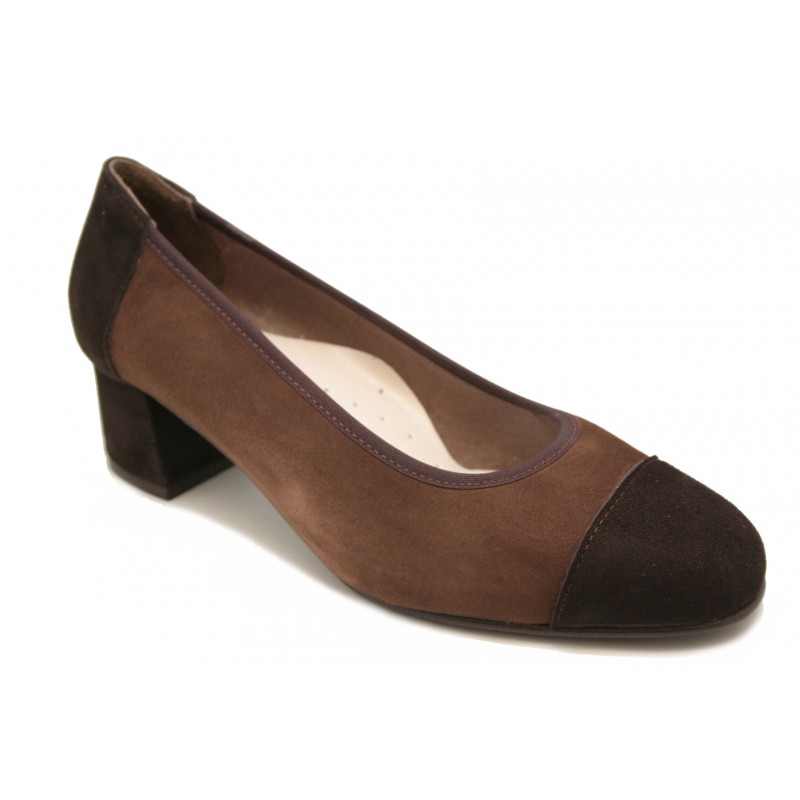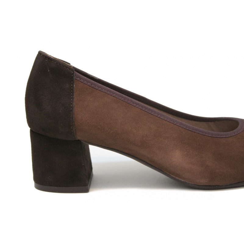 Comodísimo zapato con la planta anatómica fabricado en una suave piel de ante en dos tonos de marrón. La planta es anatómica y el forro de piel. Ideal para vestir de forma cómoda. Piso de caucho antideslizante. Tacón de pata de elefante.