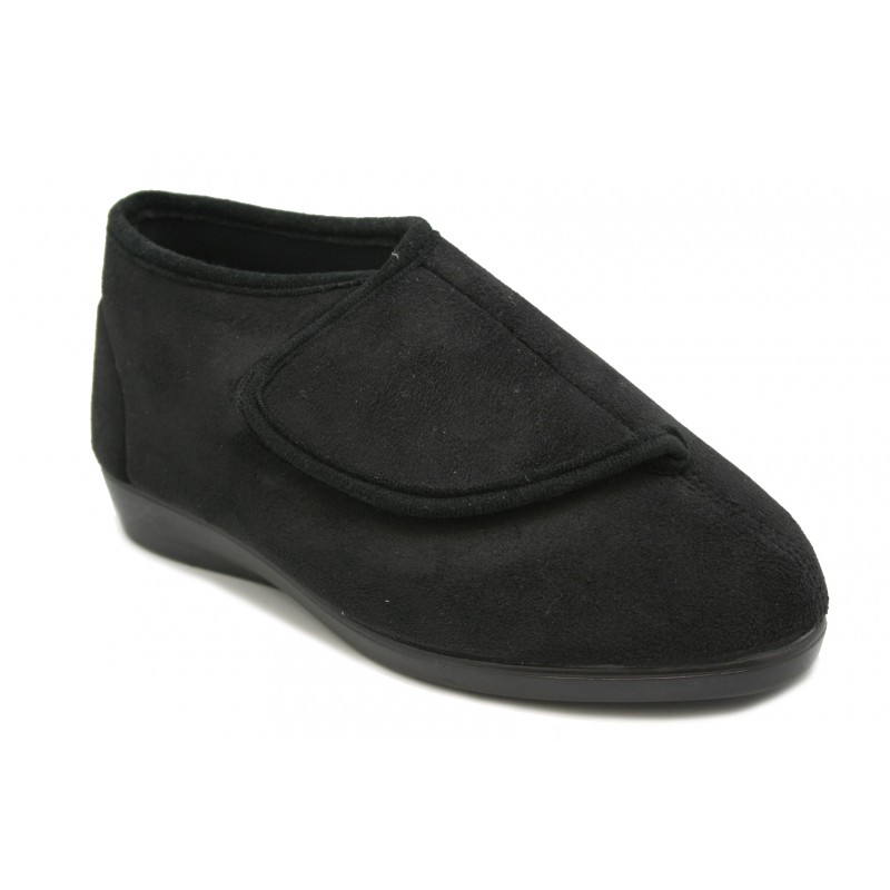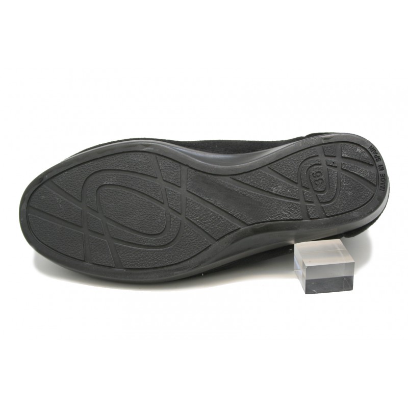 Maravilloso botín tobillero, para pies muy delicados y altos de empeine. Ideal para casa.Fabricado todo en lycra negra. Pala con velcro, tipo "sobre". Ideal para personas con mala circulación en los pies.